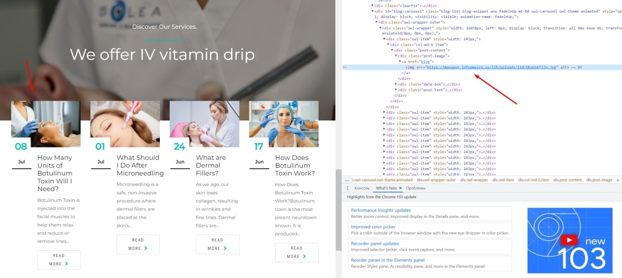 - Der Blog funktionierte nicht. Alle Blogartikel waren an den Server des vorherigen Dienstleisters gebunden. Dadurch wurden Bilder nicht geladen, und Links führten zu nicht existierenden Seiten oder Platzhaltern. Im Google-Cache gespeicherte Kopien zeigten, dass ein Teil des Inhalts einzigartig war, der Großteil jedoch ein Plagiat.