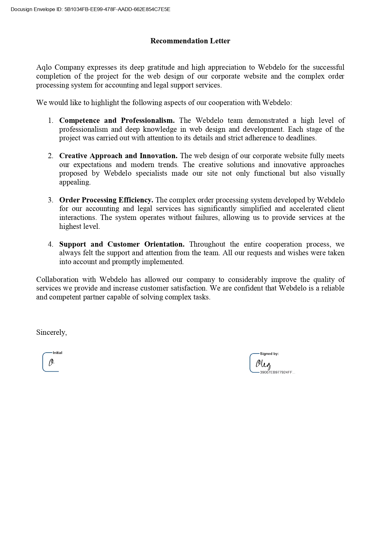 Aqlo Company expresses its deep gratitude and high appreciation to Webdelo for the successful