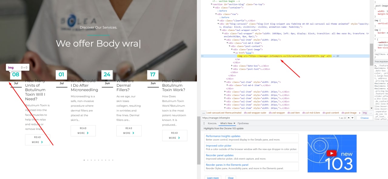 - Блог не работал. Все статьи блога были привязаны к серверу предыдущего подрядчика. Из-за этого изображения не подтягивались, а ссылки вели на несуществующие страницы или заглушки. Сохранившиеся в Google кэше копии показали, что часть контента была уникальной, но большая часть — плагиатом.