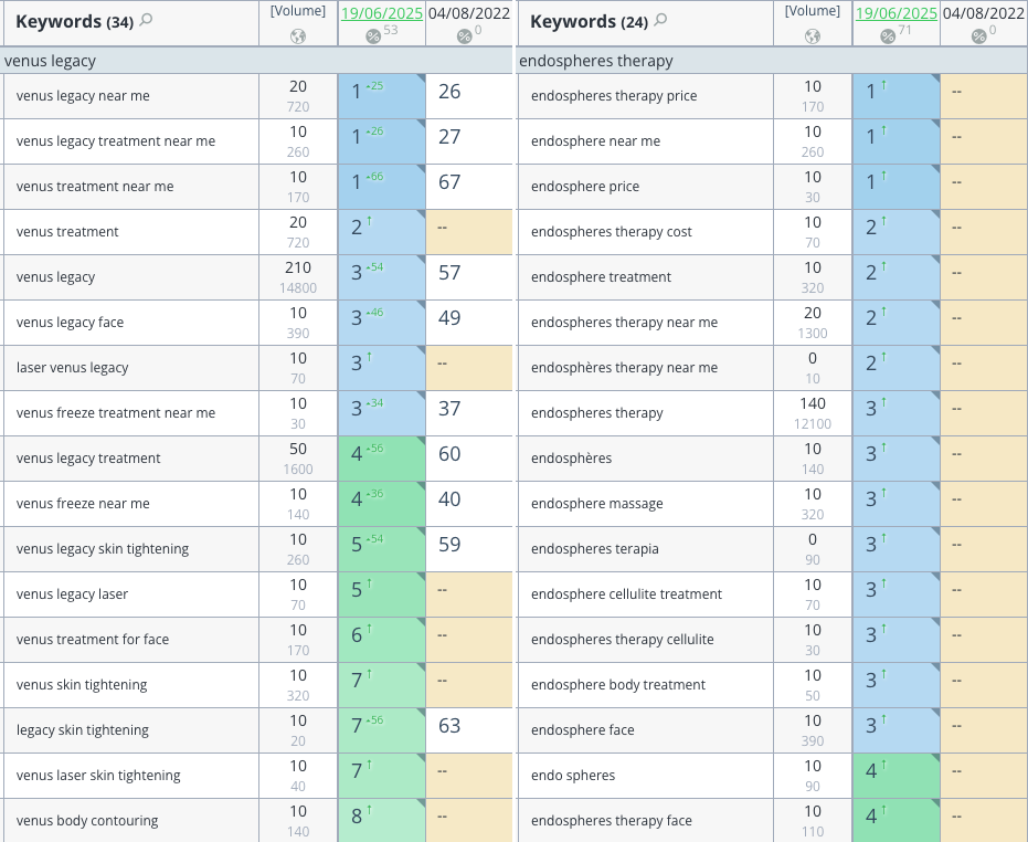 Мы проверяем позиции сайта в поисковой выдаче по сотням запросов и сравниваем ваши позиции с позициями конкурентов. Присылаем скриншоты и ссылку на подробный отчет. А также заносим данные о видимости и количестве запросов в сравнительную таблицу. Мы покажем вам живые позиции в Google Organic, с достоверностью в 100%.